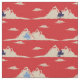 Esta divertida tela con motivos de invierno es perfecta para los Navidades y tiene un divertido estilo de inspiración vintage. Este material tiene un patrón de motos de nieve, montañas nevadas y nubes onduladas en tonos azules, marfil o crema, ambientadas en un fondo rojo.