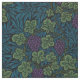 Elegante diseño vintage de colores intensos, con racimos de uvas violetas maduras en vides entrelazadas con hojas verdes y polvorientas en fondo azul oscuro. El patrón es transparente y escalable.