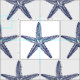 Tela Vintage Navy Blue Starfish Monograma Lino costero