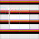 Este diseño presenta un patrón de rayas de color violeta, dorado, rojo, negro y blanco.