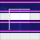 El diseño presenta un diseño de rayas de color violeta, violeta, azul oscuro, blanco y negro.