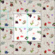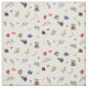 The image shows a delightful pattern on a fabric or wallpaper. The pattern features a mix of botanical elements and small hearts scattered across a light beige background. Various types of berries, leaves, and flowers in different colors, including purple, red, and blue, make up the design. Small hearts in red, pink, and purple are interspersed among the botanical elements, creating a delicate and whimsical look reminiscent of nature.