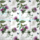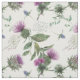 Wildflower Purple Thistle showcases a graceful arrangement of watercolor thistles, airy wildflowers, and soft green foliage scattered across a clean, light background. Rich plum and lavender thistle blooms contrast beautifully with sage and olive leaves, while delicate star-like blossoms add a light, whimsical touch. The hand-painted style brings a refined yet natural elegance, evoking windswept meadows and countryside gardens. Perfect for fabric applications ranging from apparel and accessories to home décor, this design blends rustic charm with a sophisticated botanical aesthetic.