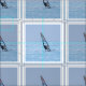 El Windsurfing en el horizonte en aguas azules tropicales.