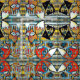 Un modelo reflejado lindo de zorros rojos y de corazones adorna esta tela.