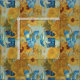 Fondo de Vincent van Gogh letras y del monograma amarillos claros elegantes de Vincent van Gogh con sus girasoles de la pintura como fondo