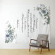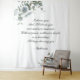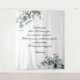 Telón de fondo para boda con versículo personalizable y decoración floral nativa azul.