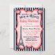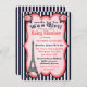 Invitaciones a una ducha con flores parisinas. Invite a sus amigos y seres queridos a una ducha de bebé con temática parisina con la Torre Eiffel sobre un bonito fondo rosa y rayas negras y rosa pálido. Ilustracion dibujado a mano por McBooboo.
