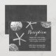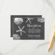 Tarjetas de recepción de boda con conchas de tema de playa de pizarra.
