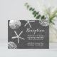 Tarjetas de recepción de boda con tema de playa de pizarra y conchas marinas.