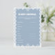 ¡Haga su celebración más divertida con este juego de ducha de bebé moderno! Diseñada para ser sencilla, elegante y entretenida, esta tarjeta de juego es la forma perfecta de hacer reír a los huéspedes, charlar y celebrar a los futuros padres. Elefante - Perro 🐶 Calf - Cachorro 🦒 Girafa - Calf 🐋 Orca (Ballena Asesina) - Gato 🐱 Calf - Cabra 🐐 Gatita - Conejo 🐇 Niño - Kit / Conejo 🦙 Llama - Cria snigaroo - Joey Say Opossum - Joey