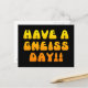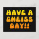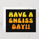 ¡¡Tengan Un Día De Gneiss!! - letras amarillo-naranja en una postal negra.