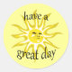 Un sol gráfico del artista/diseñador Charmaine Paulson con el texto "ten un gran día" en un pegatina.