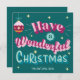 Cuidada, colorida, caprichosa tarjeta de saludo de navidades con tipografía elegante y adorno decorativo colgante con diseños estelares.