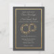 "Tener y aferrarse a partir de este día...mientras ambos vivamos". Los votos y las coronas florales se combinan para formar dos anillos que se unen y adornan esta sencilla pero elegante invitación a la boda. Se muestra en papel mate con fondo gris oscuro (puede cambiar el color de fondo si lo desea).