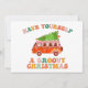 Llevando la Navidad de viaje con Santa camino a la playa. Esta vibra retro es divertida para todos. Navidad acampando.