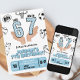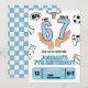 Invite a tus invitados a celebrar el cumpleaños número 6 o 7 de un niño genial con esta invitación energética y de moda. Este diseño presenta un fondo oscuro y temperamental contrastado con acentos y gráficos en azul eléctrico atrevido.