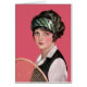 Esta joven está lista para un partido de tenis. La mujer ventilado tiene un fondo rosado profundo. La tarjeta interna está lista para que usted sea personalizar.