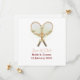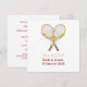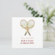 Anuncie a su pareja perfecta con estilo con esta elegante invitación de boda de tenis "Save the Date", que presenta dos raquetas de tenis dispuestas en forma de corazón romántico con flores suaves de acuarela. El diseño incluye un lavado de cancha de color menta pálido sutil para un aspecto limpio y moderno, manteniendo la estética brillante, minimalista y sofisticada.