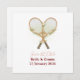 Anuncie a su pareja perfecta con estilo con esta elegante invitación de boda de tenis "Save the Date", que presenta dos raquetas de tenis dispuestas en forma de corazón romántico con flores suaves de acuarela. El diseño incluye un lavado de cancha de color menta pálido sutil para una apariencia limpia y moderna, manteniendo el estilo brillante, minimalista y sofisticado.