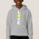 Un singular tenis vertical AMA la sudadera capucha de niño para jugadores de tenis y aficionados, con AMOR yendo verticalmente por el centro y una gráfica de pelota de tenis en lugar de O. Ideal para usar durante la temporada de tenis, especialmente para practicar tenis, competencias y torneos.