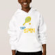 Retro, pop, colorida creación de la silueta de raqueta de tenis, Hoodie. Tema especial del coloreado amarillo y verde, con un simple pero elegante icono de estilo artístico. Pop y estilo retro, diseño único.