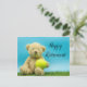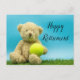 Tennis Teddy Oso sostiene tarjeta de retiro de bol