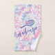Toalla de tenis rosa y púrpura personalizada con una simple raqueta de tenis linda, un nombre o un texto personalizado en un monograma femenino de escritura de bonito y moderno. A los chicas o a las tenistas les encantará el moderno y moderno toque retro de color de este moderno y minimalista regalo sobre la temática del tenis.