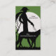 Una silueta elegante de la moda del art déco de la mujer y del perro fijados contra una luna blanca brillante, fondo suave-coloreado con la silueta negra.