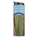 Un diseño abstracto llamativo con rayas rosas, azules y verdes, perfecto para añadir color a cualquier espacio.