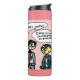Aanbesteden houdt niet op, niet vanzelf. Thermosbeker met tekst "aanbesteden het houdt niet op, niet vanzelf" en design van Zazkia, geproduceerd voor Aanbestedingsnieuws