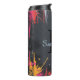 A striking and abstract background image featuring a textured dark gray or black center space surrounded by a chaotic, energetic border of bright paint splatters and dynamic brush strokes. The vibrant colors include hot neon pink, bold yellow/orange, bright cyan, and deep red, creating a high-contrast, edgy aesthetic. The paint looks violently applied with scratching and splashing, giving the impression of a grunge or street art style frame. Customize it with you initial and name.