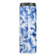Un patrón abstracto de hojas aleatorias azules y blancas.