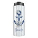 acuarela azul floral franjas náuticas nombre Tumbler térmico