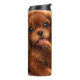 Adorable Ruby Cavalier Spaniel Socks. The Spaniel is licking it's Paw in a cute pose