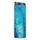 Piedras, cristales y minerales son un estilo de moda intemporal. Esta impresión se caracteriza por la imagen de cerca de una vibrante piedra geodésica azul, con pequeños cristales en el bolsillo del ágate. Un conjunto de colores turquesa o azul acuático con líneas y bandas únicas. Un estilo lúdico, moderno y de diseño.