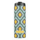 Termo Aqua gris y monograma marroquí de Ikat amarillo