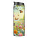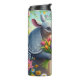 Se trata de un ilustracion caprichoso y encantador de un armadillo situado en un bonito y vibrante jardín de flores. El armadillo, con su caparazón escamoso, azul y blanco, sostiene un ramo de tulipanes coloridos. Está rodeado por una variedad de flores florecientes y mariposas floridas. El fondo es un paisaje luminoso y soleado con colinas onduladas, creando una estética alegre y serena. Un pequeño pájaro se perfila sobre una rama de árbol por encima.
