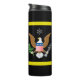 Keep your cold drinks cold and hot drinks hot with this quality vacuum sealed Thermal Tumbler. The design features a background of official Army colors holding a facsimile of our country's defense emblem, plus name, rank and "Retired" (if needed).When you select “Personalize this design” you will be offered options to easily change the text (wording, plus type font, color, size, position) and to possibly edit the design elements with changes you may want to make. See Options for other styles of mugs. You may also want to scroll down to the section “Transfer design to a product” for a few suggestions about other items this design can be used on. Makes a great gift.