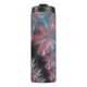 Arte con flores abstractas colocadas en filas simétricas en forma de traza fractal. Las flores son de colores y colores claros como el rosa o el azul con un toque de luz, mientras que el color oscuro del fondo contrasta con las flores. Toda la composición parece cuidada, original y pegadiza.