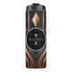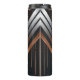 A luxurious Art Deco design featuring a bold central circle with a customizable monogram letter intersected by a personalized name. Polished copper and metallic silver geometric elements create a striking symmetrical composition against a deep matte background. The clean intersection of the letter and name adds a refined personal touch.