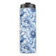 Un delicado patrón de porcelana azul y blanca de granja que muestra flores grandes y detalladas. Este diseño floral captura la esencia de la pintura tradicional con precisión moderna y estilo Art Nouveau.