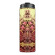Un elegante friso de papel pintado victoriano de rosa floral. Flores y adornos artísticos vintage en oro, rosa y rojo.