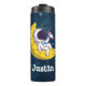 Sueña grande y aspira a las estrellas con este adorable y personalizable diseño Tumbler! Con un astronauta adorable relajándose en una luna creciente amarilla mientras sostiene un cohete de juguete, contra un cielo estrellado por la noche. Añada fácilmente el nombre de su hijo o una cita motivacional para hacer de esta carpeta la única suya para la temporada de 'Volver a la escuela'. ¡Una forma divertida e inspiradora de organizarse!