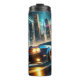 Termo Auto muscular clásico contra el paisaje urbano fut