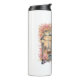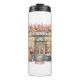 A romantic autumn café storefront surrounded with pastel flowers and fall leaves, displaying a warm bookshop interior and a small outdoor table with coffee. Perfect gift Bouteilles isothermes for readers, coffee lovers, librarians, writers, and anyone who adores cozy fall aesthetics.