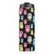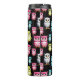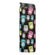 Cuidada colorida rosa, amarilla, azul y blanca pájaros de búho de kawaii patrón de superficie Diseño Sobre un fondo negro