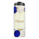 Flores románticas azul real y blancas con hojas doradas tumbler térmico botánico