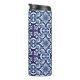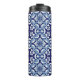 Este producto tiene un diseño intrincado con un fondo azul oscuro y patrones ornamentales blancos. El diseño recuerda a los estilos tradicionales de cerámica o porcelana, que pueden interesar a los amantes de la estética clásica o vintage.