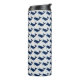 Ballenas azules dibujadas a mano sobre un fondo gris claro.